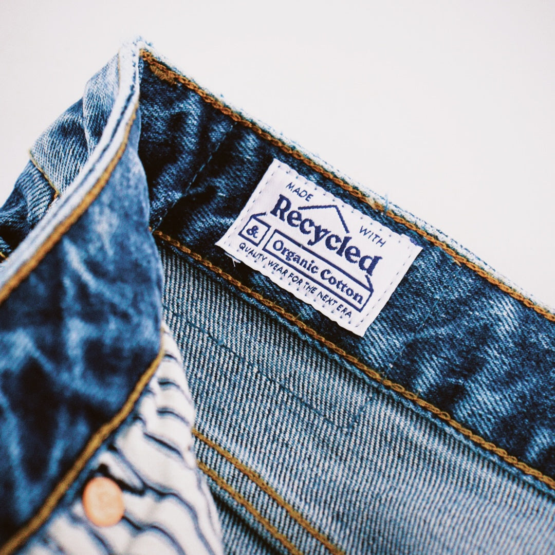 Unsere gewebten Etiketten bestehen zu 80% aus recyceltem Polyester und zu 20% aus Bio-Baumwolle. Papier-Details werden aus recyceltem Papier hergestellt. Unsere Polybeutel bestehen zu 80% aus recyceltem Material. Bei dunklen Jeans wird der Polybeutel weggelassen, um unnötige Ressourcen einzusparen.